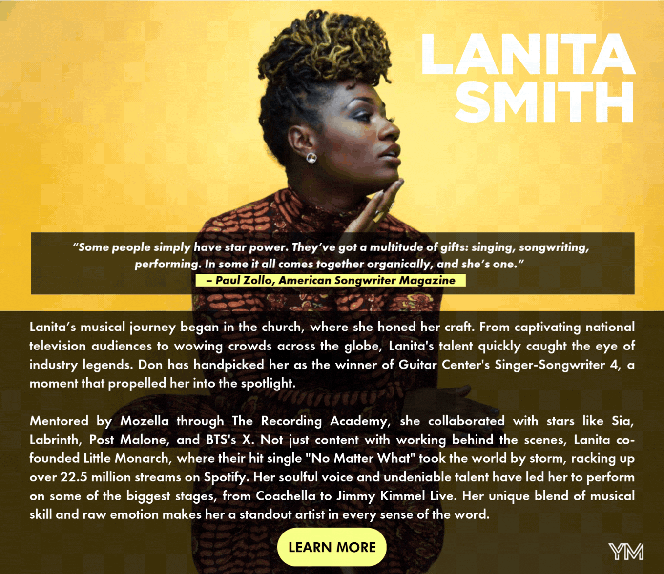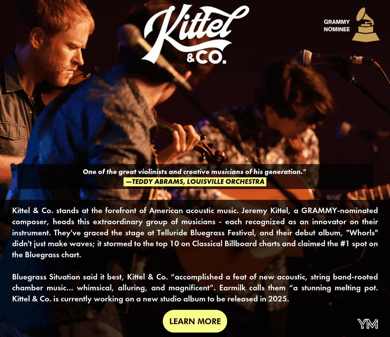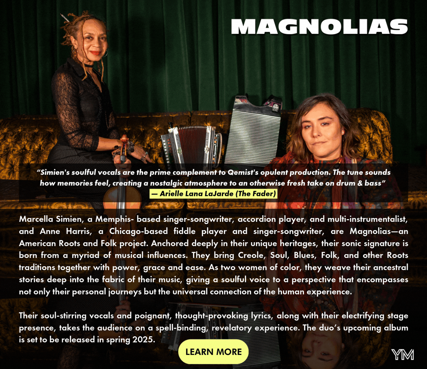 Progressive Bluegrass and GRAMMY nominees Kittel & Co., led by violinist Jeremy Kittel, are "thrillingly spontaneous... taking traditional music forward" according to the Times UK. Jeremy Kittel’s orchestral debut Stones River will be released in 2025. Max Gomez blends country blues with his unique songwriting style, earning him a spot alongside legends like John Hiatt and Patty Griffin. Poised to lead Americana's next generation, he’s a rising voice in the genre. Max releases his next studio album Memory Mountain in April. Marcella Simien, daughter of two-time Grammy award-winning Zydeco luminary Terrance Simien, is wielding the torch of a veritable creole dynasty blending elements of Zydeco, Soul, and Blues. Marcella’s forthcoming debut solo album, To Bend to the Will of a Dream That’s Being Fulfilled, captures her deeply personal journey. She played every instrument, wrote every lyric, and sang every vocal part herself. “I felt it necessary to have my hand touch every aspect of this collection of music,” she says. Marcella has partnered with longtime friend and collaborator Anne Harris to form an all-female group Magnolias. Lanita Smith blends soulful vocals and powerful songwriting, gracing stages from Coachella to Jimmy Kimmel Live and was just featured in Alicia Keys’ new documentary Uncharted.