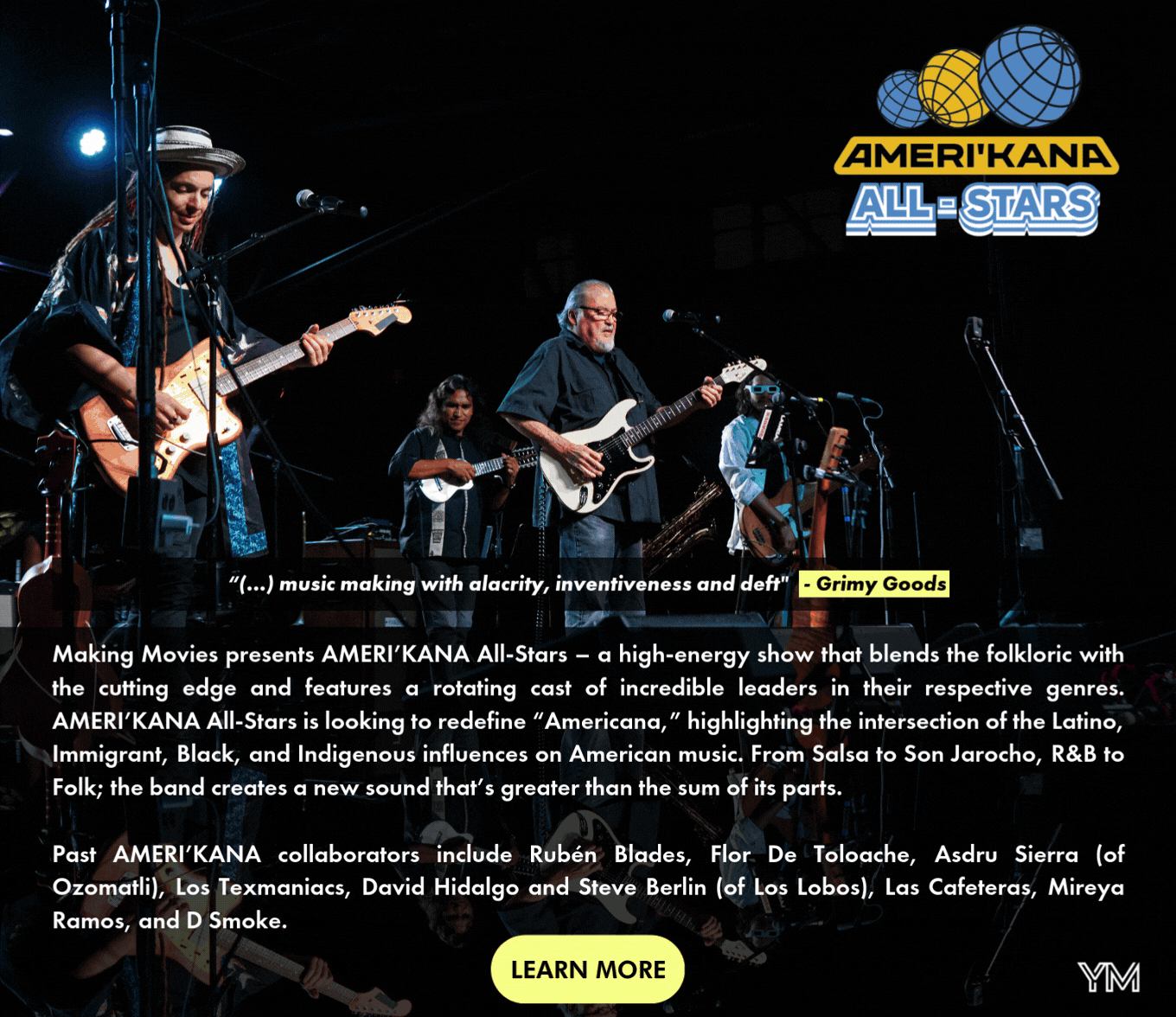 Celebrate AMERI’KANA NYC, a transformative evening-long festival showcasing the diverse and cross-pollinated nature of American music. Founded by the Latin Grammy-nominated band Making Movies, this traveling festival honors the vibrant intersections of culture, history, and sound that define the American musical experience.