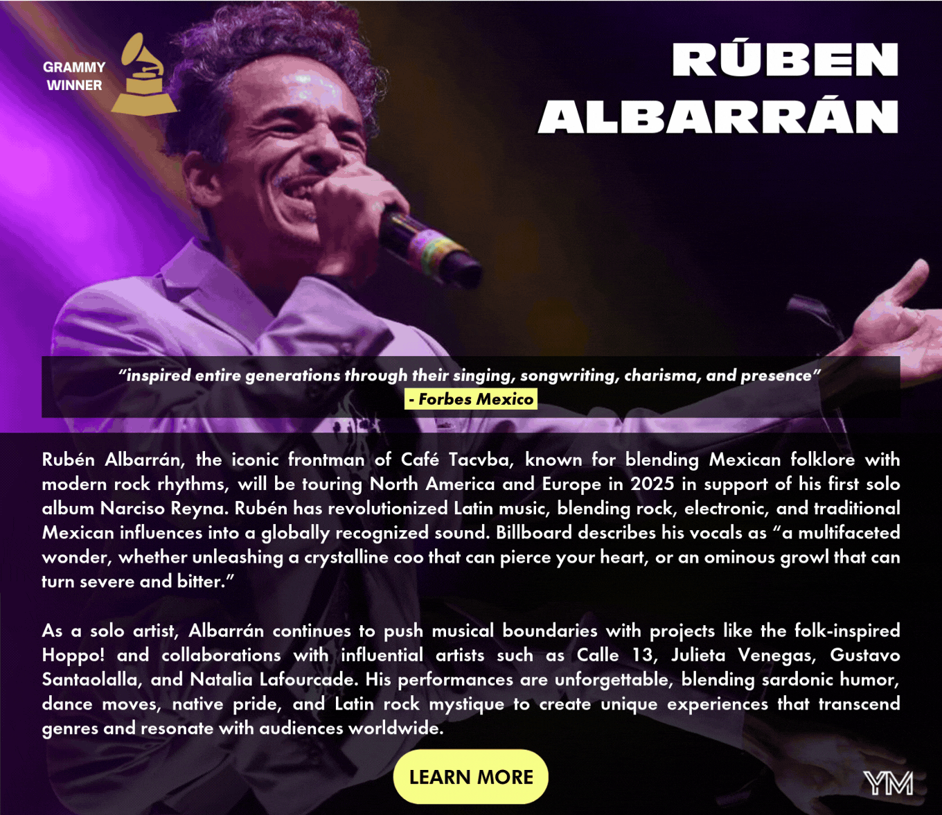 Yonas Media is proud to represent a diverse roster of award winning artists. Recently joining our family is Rubén Albarrán, front man for legendary Mexican band Café Tacvba, Singer-Songwriter Sachal Vasandani, and the Latin GRAMMY nominated Rodriguez Brothers.